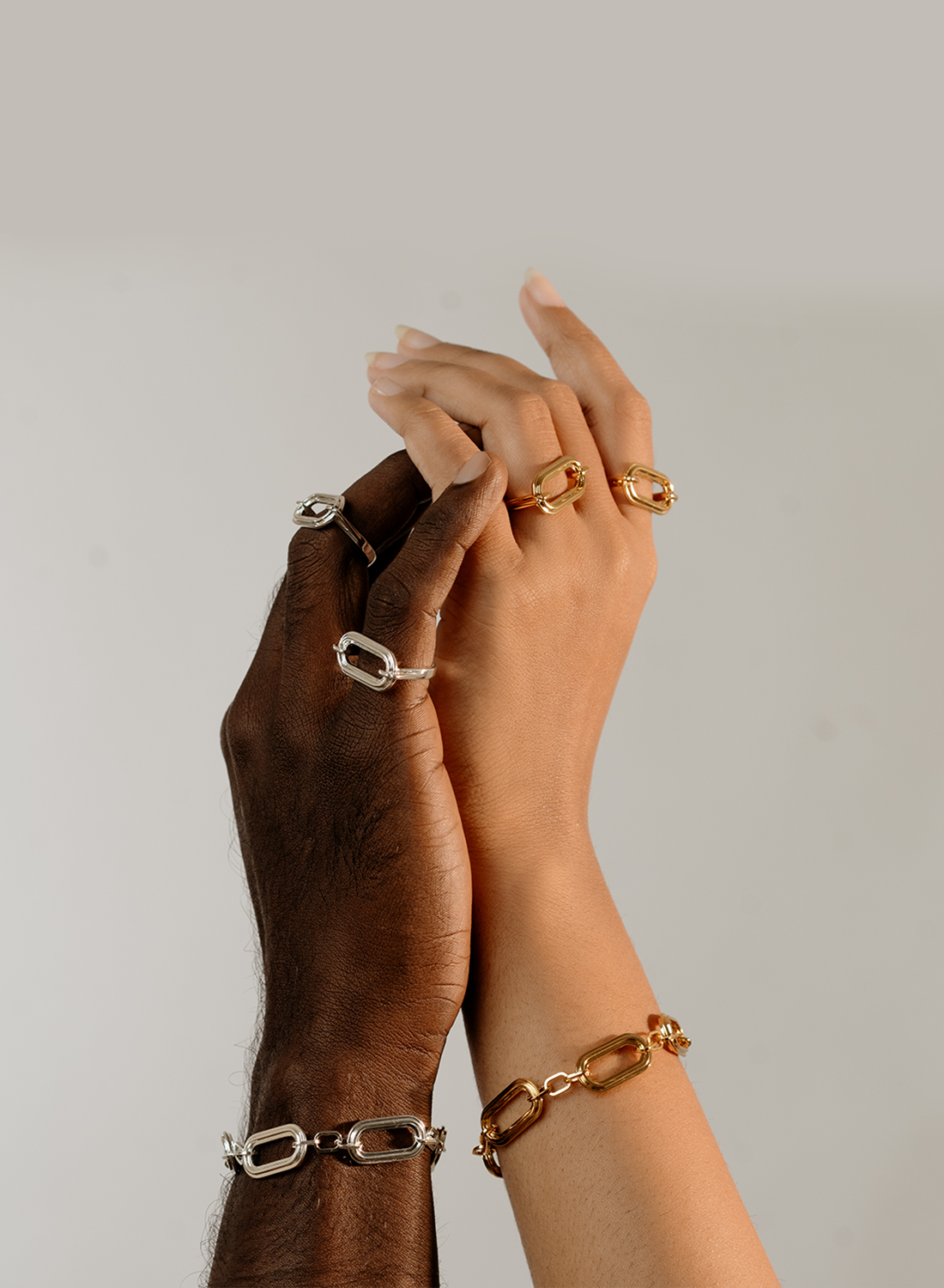 Different shapes of Oblong links with stepped metal detail.